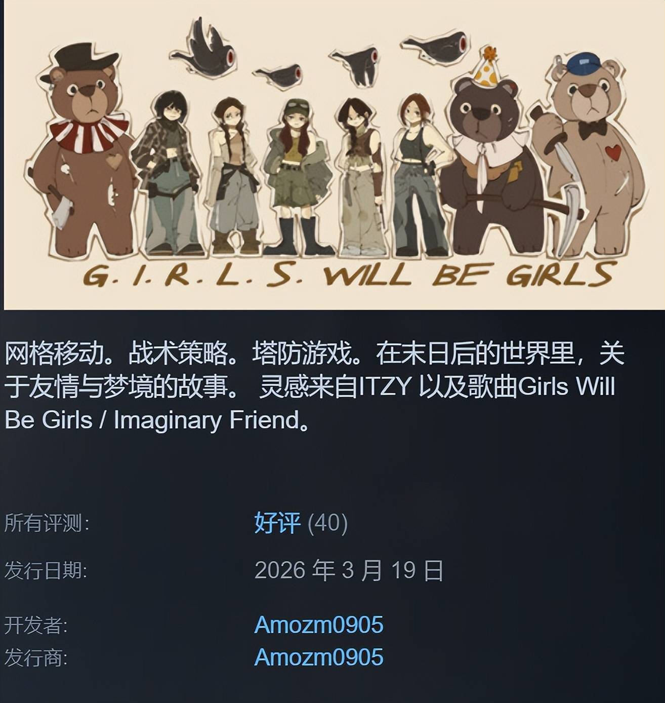 这款游戏由ITZY的中国粉丝阿墨制作,除了游戏开发,阿墨也经常在微博上更新一些高质量的同人图。从去年7月开始,阿墨着手制作《G.I.R.L.S. will be Girls》,历经大半年时间,才将作品逐步完善并最终上线。
