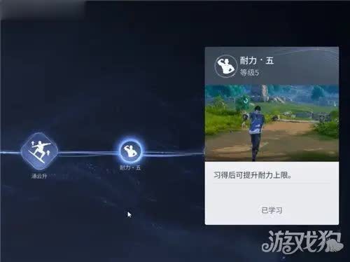 分支这边,从牵云跃开始看。第一个分支,下面那条线点满就行,点满之后,恢复速度会快得有点夸张,体力压力小很多。第二个分支,上面那条线点满,主要是强化滞空能力,在空中待的时间更长,跑图的时候灵活度会高不少。剩下的分支,按自己的习惯和喜好来就好,没有特别固定的顺序。