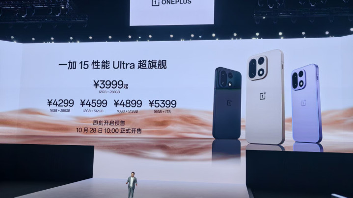 价格方面,一加15起售价为3999元,顶配16GB+1TB版5399元。