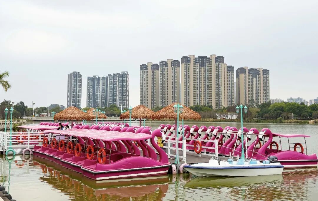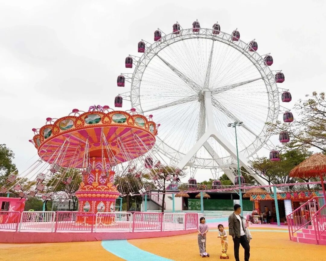 目前,48米高人字摩天轮、18米高旋转塔、10米高大型海盗船、280米长丛林飞鼠过山车等大型游乐设施均已完成系统性检测和安全调试,周边安全护栏、配套设施也全部安装完毕,火烈鸟造型电动游船凭借高颜值更是成为市民打卡的热门项目。