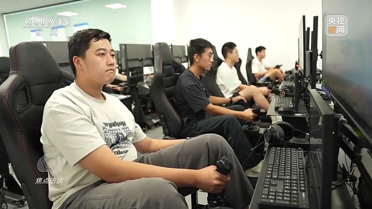 在北京航空航天大学沙河校区,低空技术与工程专业的20多位新生正在进行无人机起飞、侧风、顺风等五个阶段的飞行模拟训练,通过实操来强化对标准起落航线以及飞行操控规范的掌握。由于是首次训练,同学们的手指在操纵杆上的调整略显生涩,屏幕上的航线一度也偏离了预设轨迹。随后在老师的实时指导下同学们逐段修正航向,慢慢对操作节奏熟悉起来。