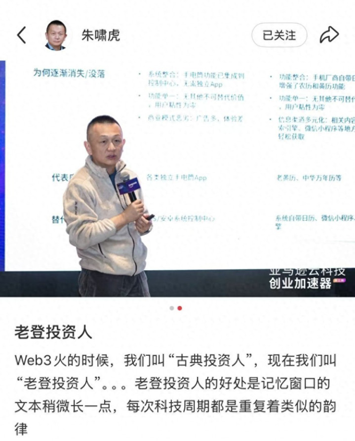 朱啸虎还在个人社交平台号上发布了出席亚马逊云科技第三期创业加速器现场的图片。